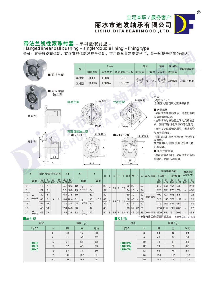 • 帶法蘭線(xiàn)性滾珠襯套 -單襯型/雙襯型